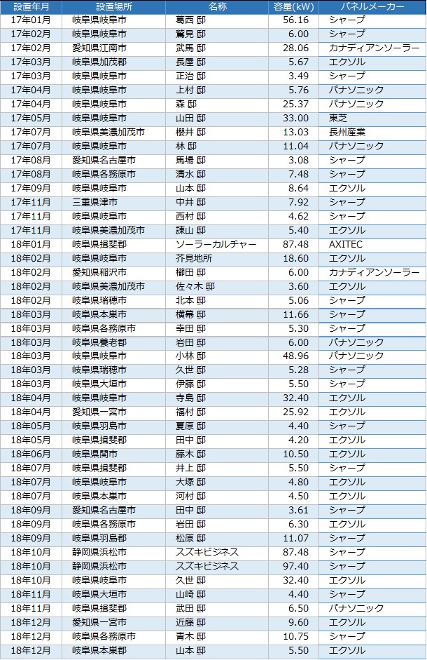 太陽光発電・・・設置実績リスト